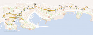 ALLER : Monaco-Ville – Prince Pierre – Bd Rainier III - Bd. Princesse Charlotte - Av. Saint-Michel - Monte-Carlo Tourisme puis itinéraire normal jusqu'au terminus Rotondes.